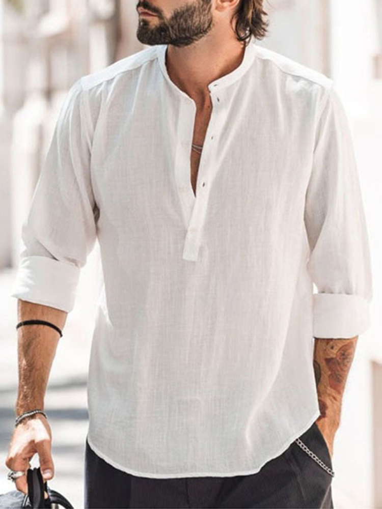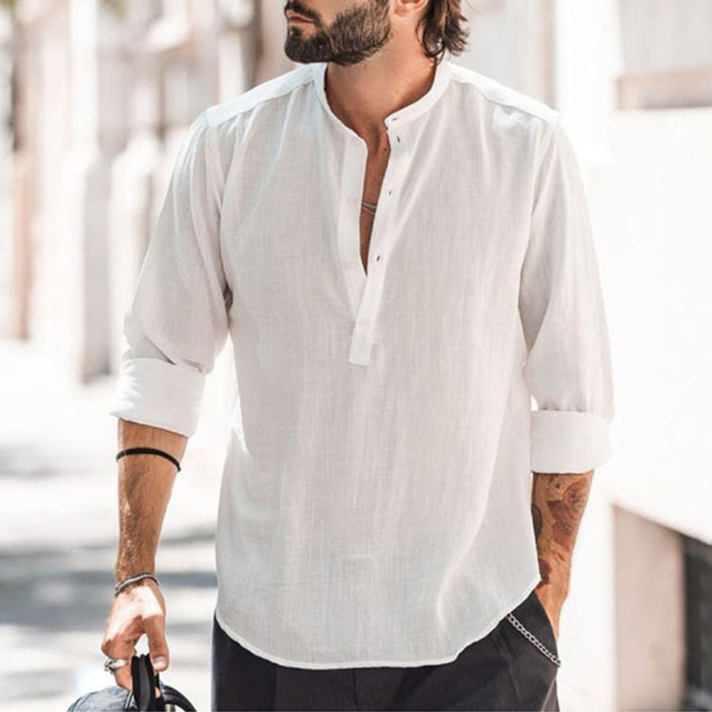 Men'S Vintage Buttoned Casual Linen Blend Shirt