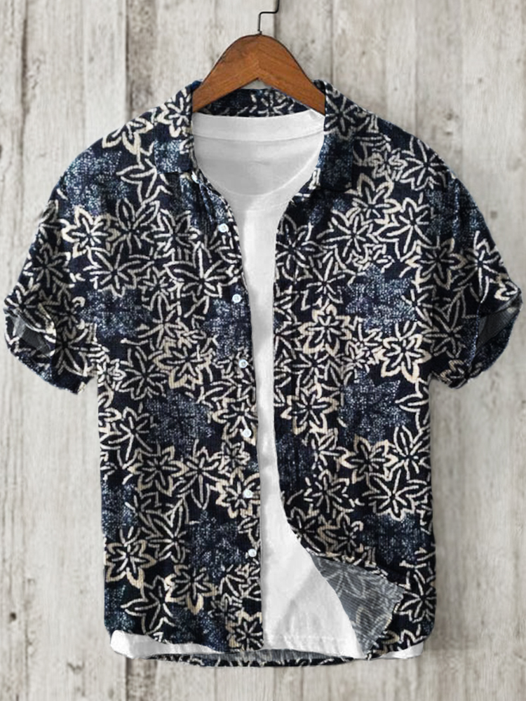 Maple Leaves Japanese Pattern Linen Blend Shirt