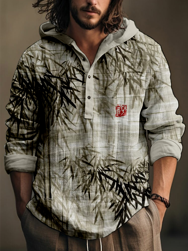 Bamboo Forest Japanese Art Linen Blend Hooded Shirt