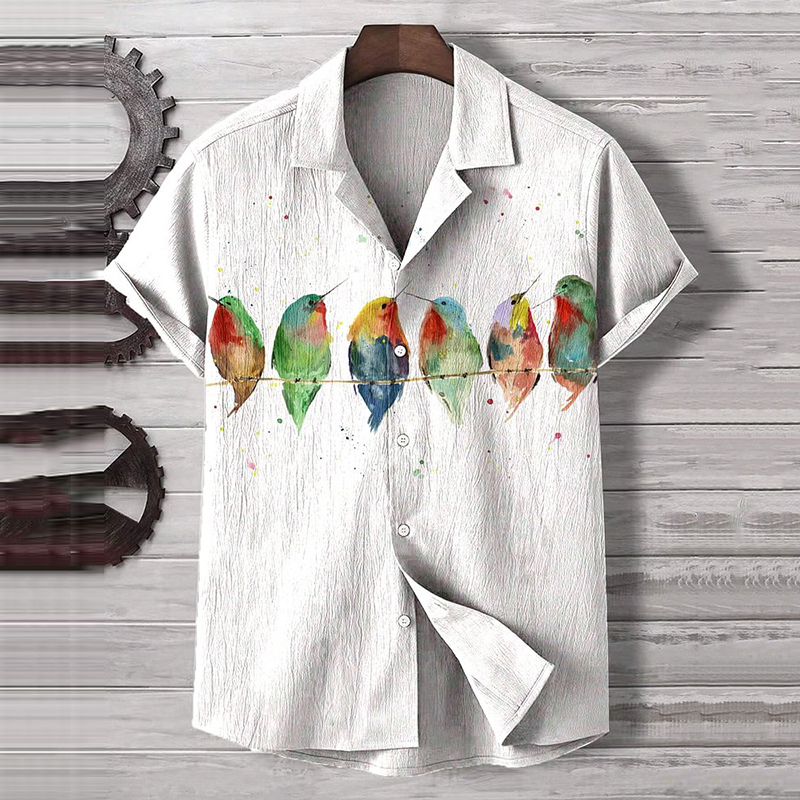 Men's Robin Bird Watercolor Art Painting Print Hawaiian Beach Shirt