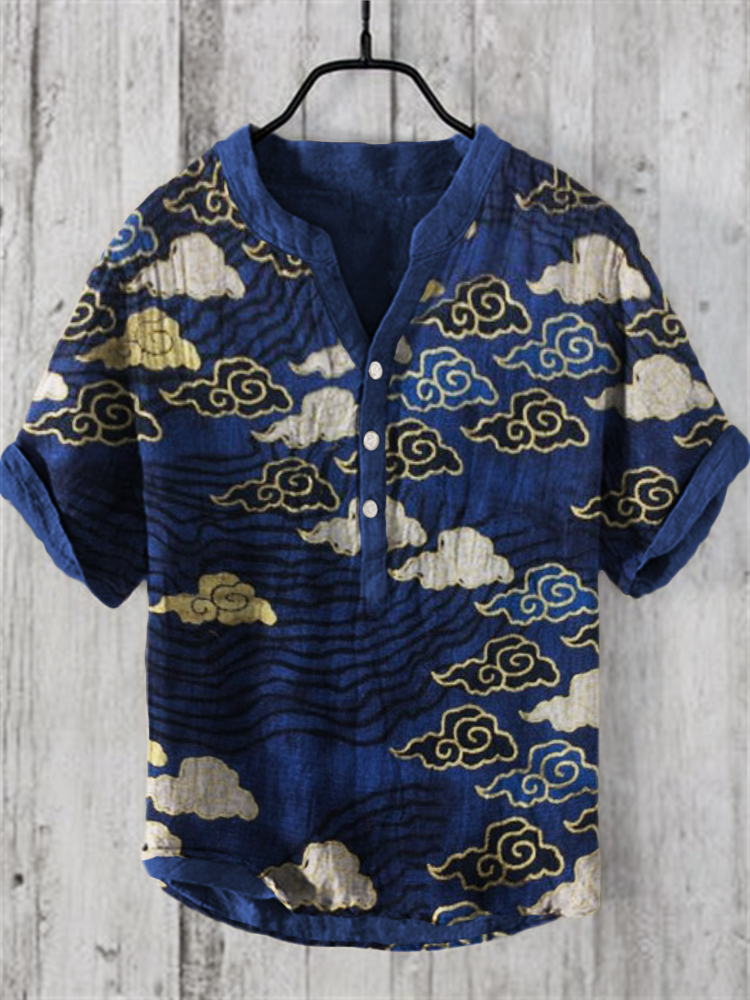 Clouds Japanese Traditional Pattern Linen Blend Shirt