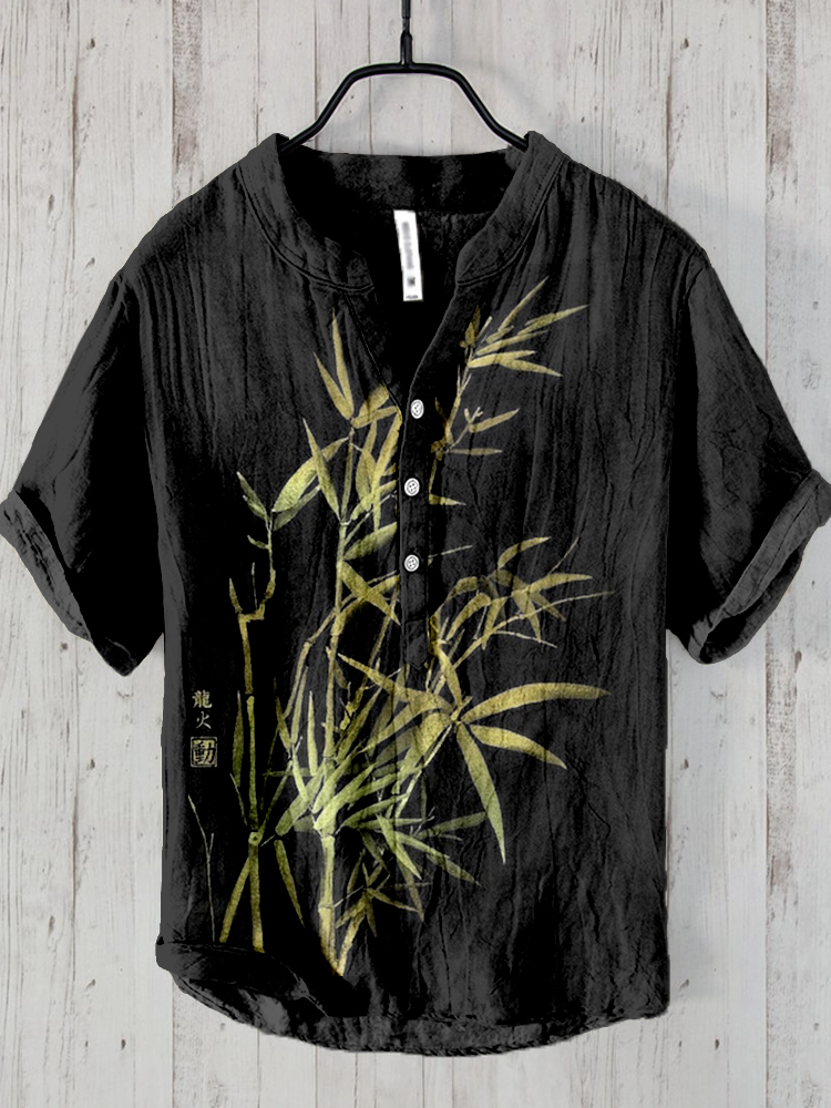 Bamboo Japanese Art Linen Blend Shirt
