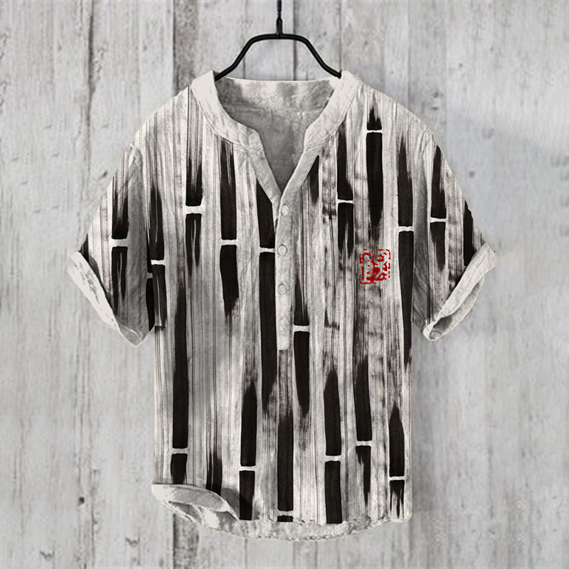 Japanese Bamboo Chiyogami Art Linen Blend Shirt