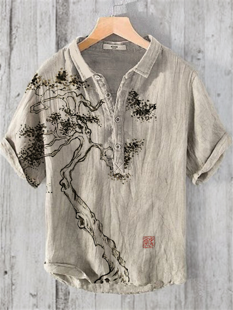 Pine Tree Japanese Art Linen Blend Shirt