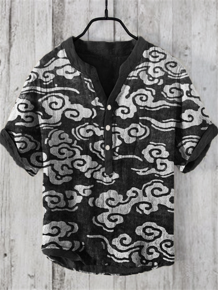 Clouds Japanese Lino Art Linen Blend Shirt