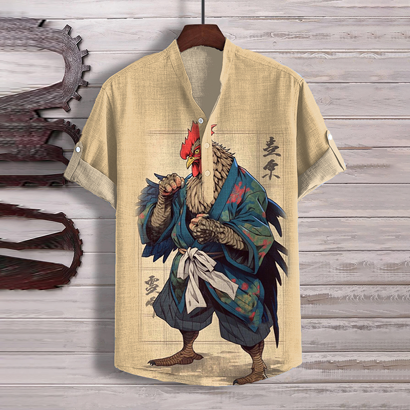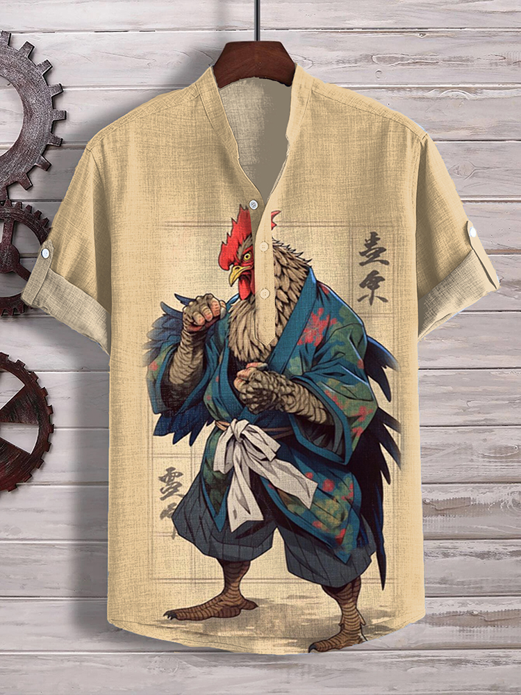Men'S Japan Funny Cock Samurai Art Print Shirt