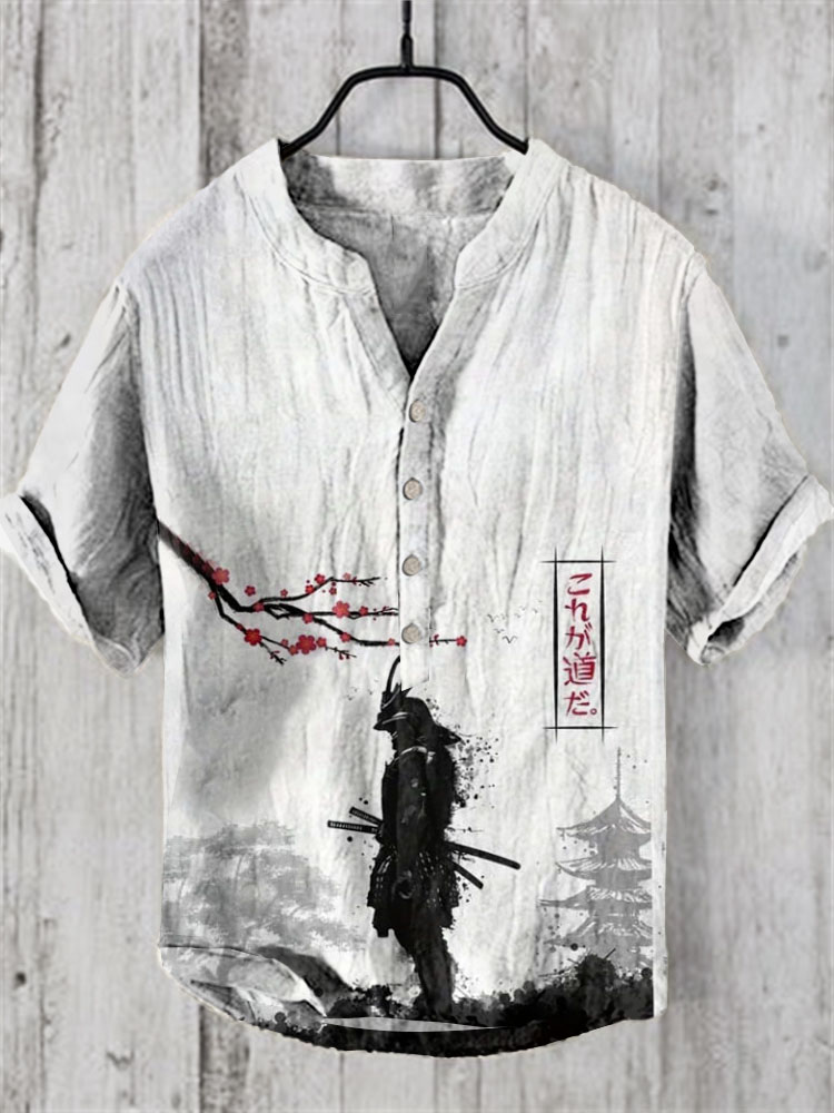 Japanese Art Warrior Tower Linen Blend Shirt