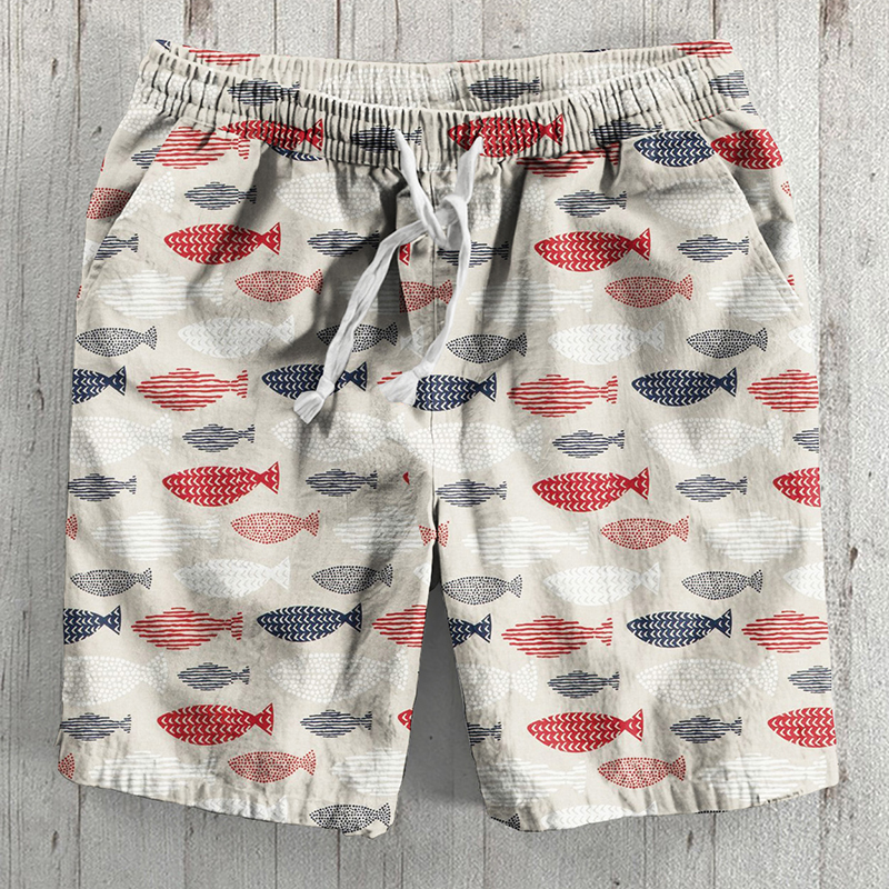 Vintage Fish Japanese Art Linen Blend Shorts