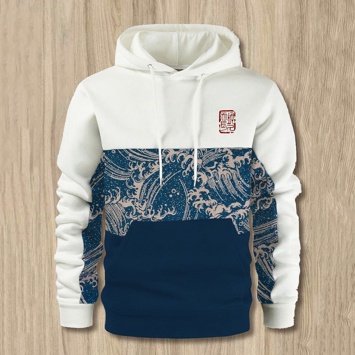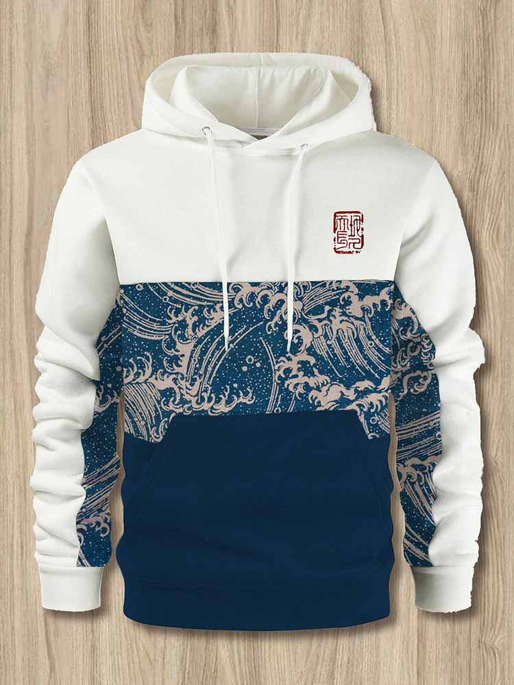 Men'S Vintage Roaring Waves Art Print Color Block Hoodie