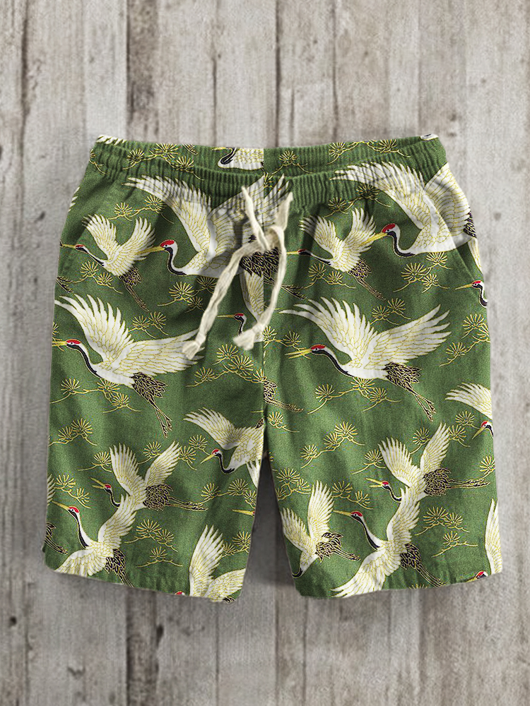 Cranes & Pine Trees Japanese Linen Blend Shorts