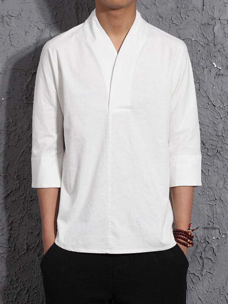 Vintage Solid Color V Neck Causal Kimono Shirt