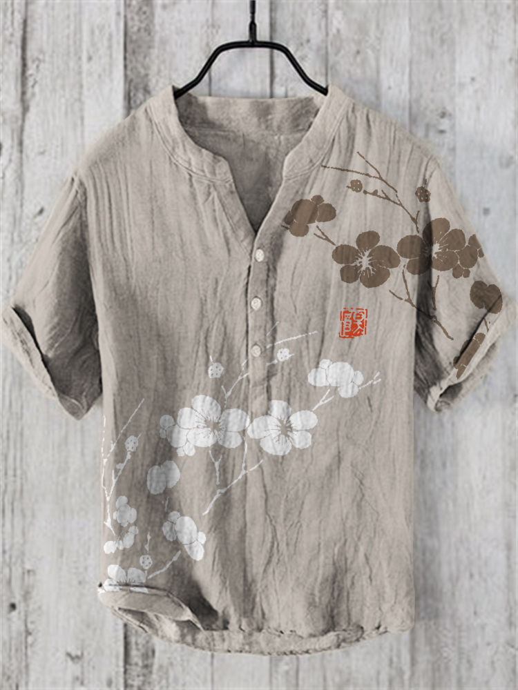 Plum Blossom Japanese Lino Art Linen Blend Shirt