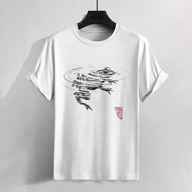 Men's Casual Frog In Water Ripple Art Drawing Printed T-Shirt