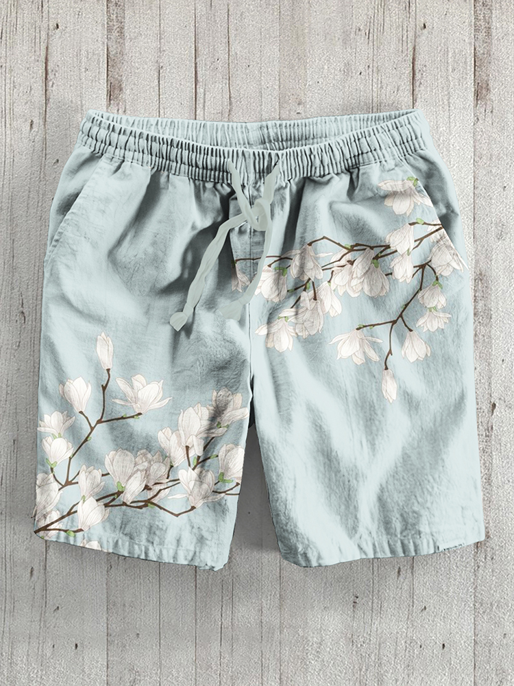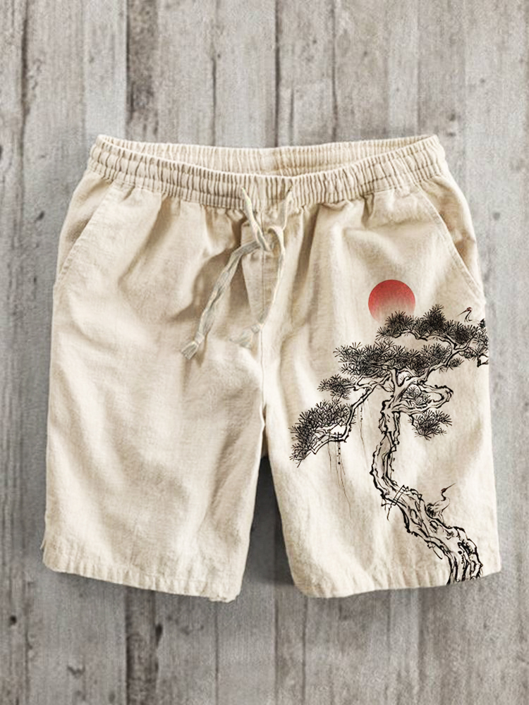 Ink and Pine Japanese Art Print Linen Shorts