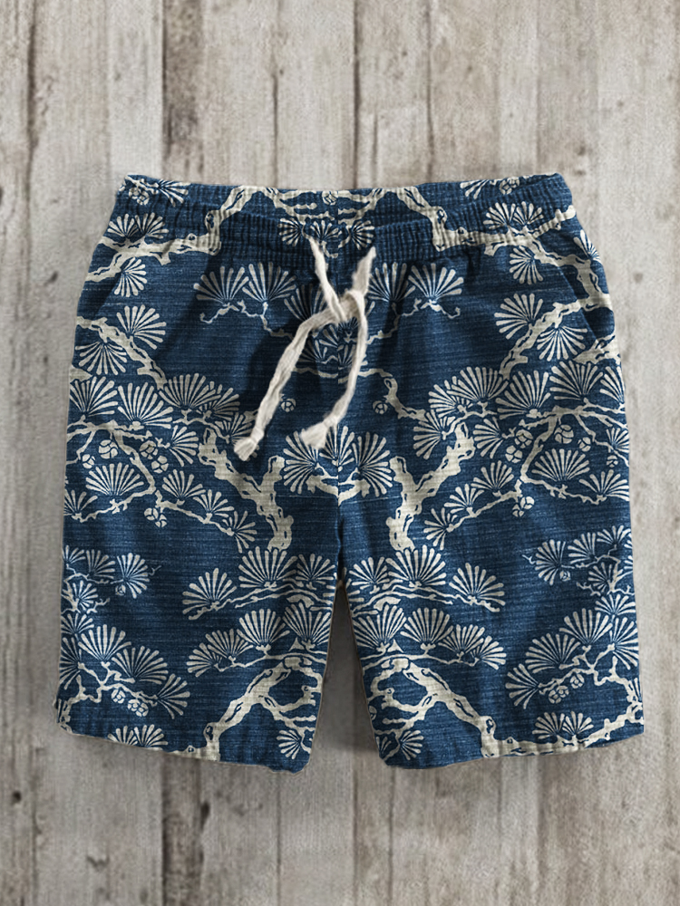 Pine Trees Japanese Lino Art Pattern Linen Blend Shorts