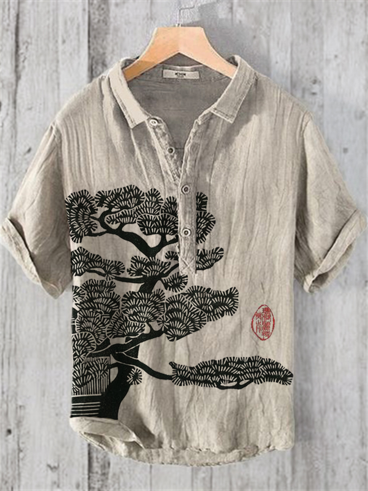 Pine Tree Japanese Lino Art Linen Blend Shirt