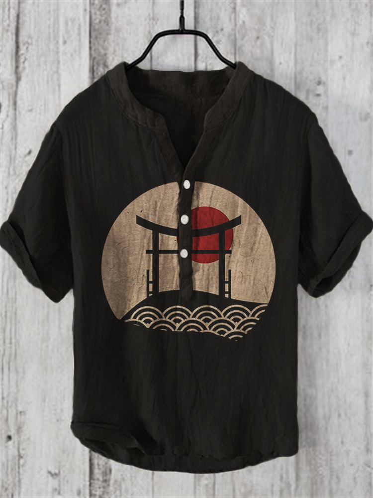 Japanese Shrine Sunrise Linen Blend Shirt