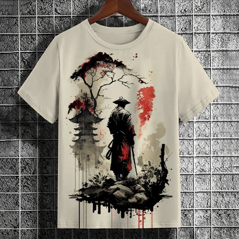 Men's Samurai Tower Tree Japanese Art Print Casual Short Sleeve T-Shirt