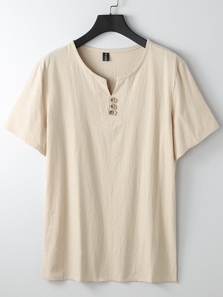 Men's Vintage Button Casual Linen Blend Short Sleeve T-Shirt