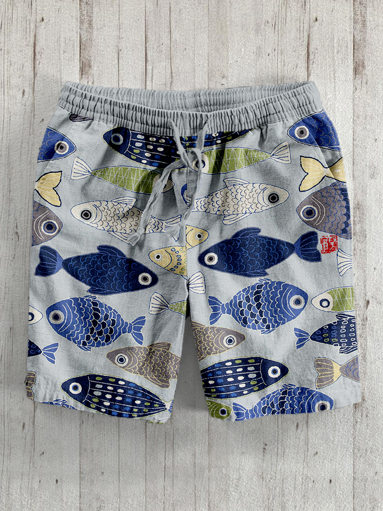 Vintage Fish Japanese Art Linen Blend Cozy Shorts