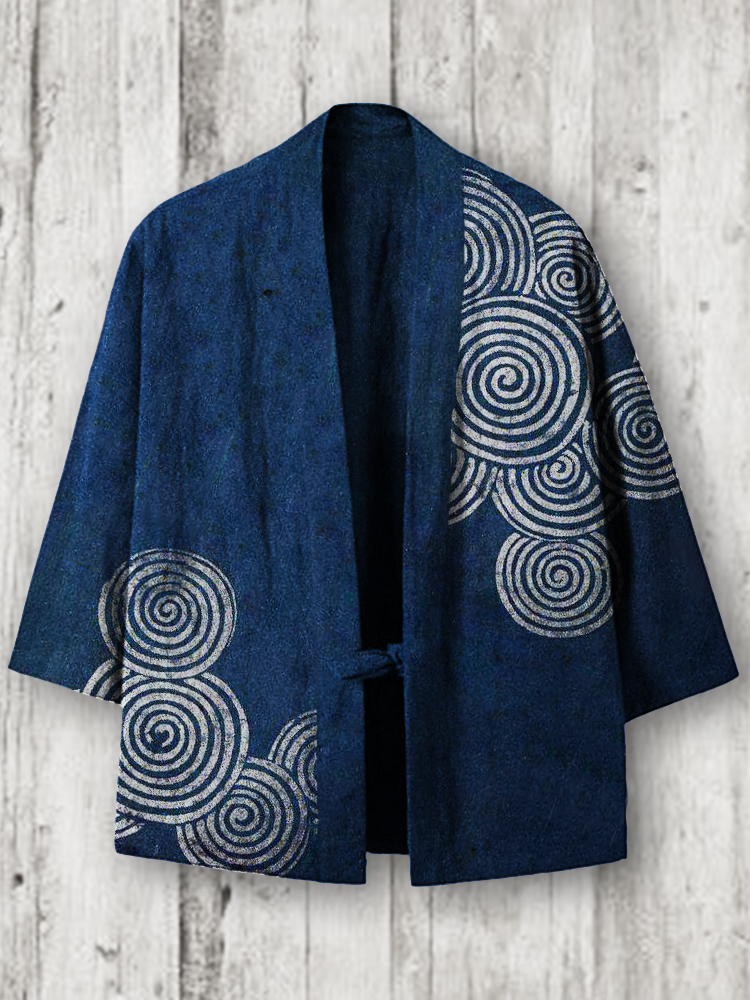 Sea Waves Ripples Japanese Lino Art Linen Blend Kimono Cardigan