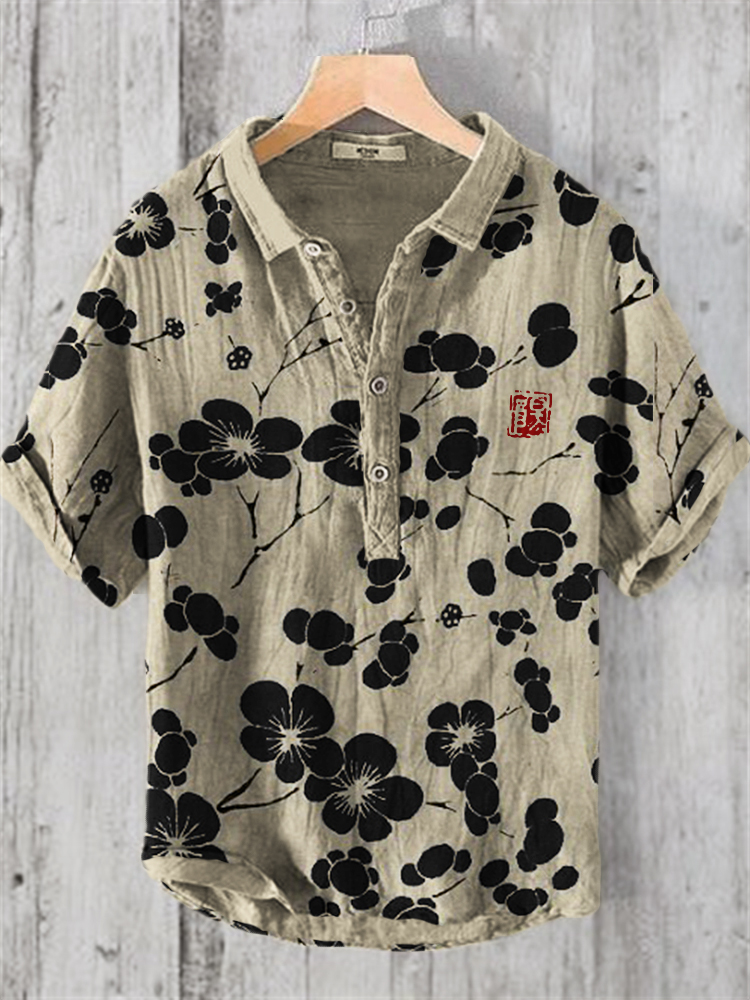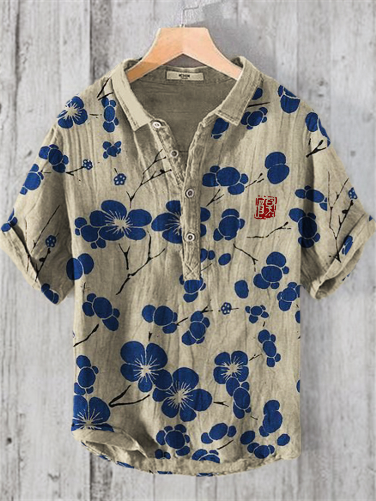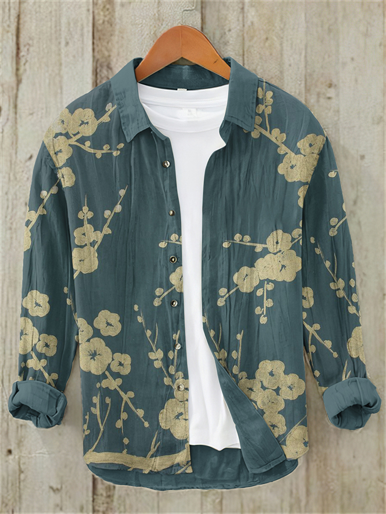 Men's Vintage Japanese Art Floral Casual Linen Blend Shirt