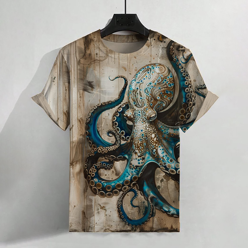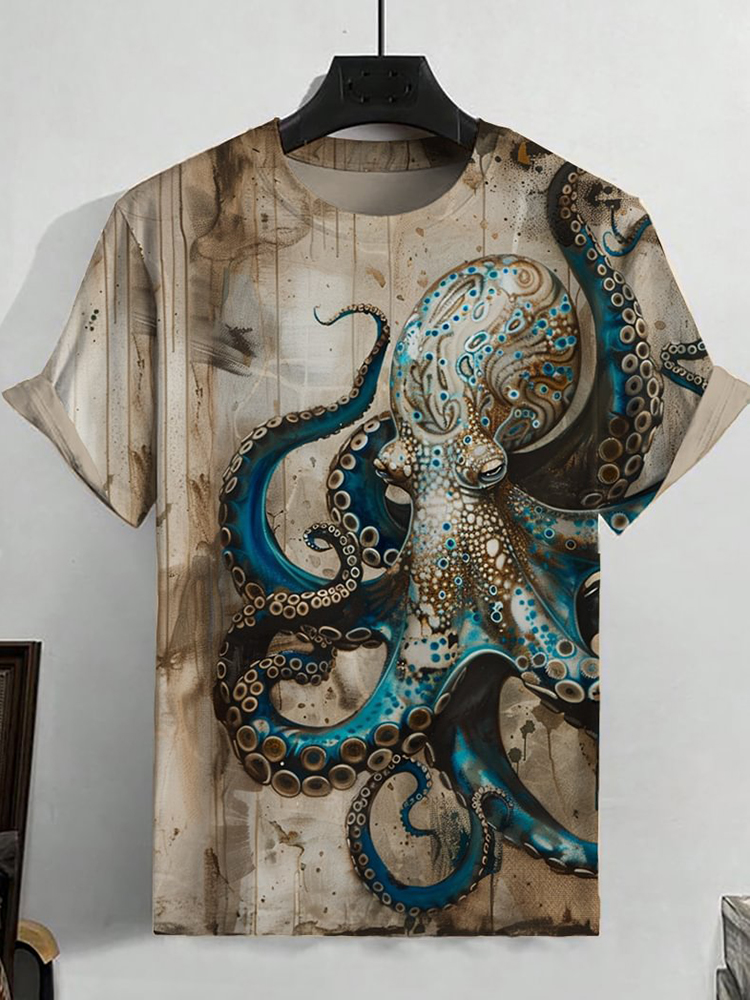 Men's Vintage Octopus Art Print Casual T-Shirt
