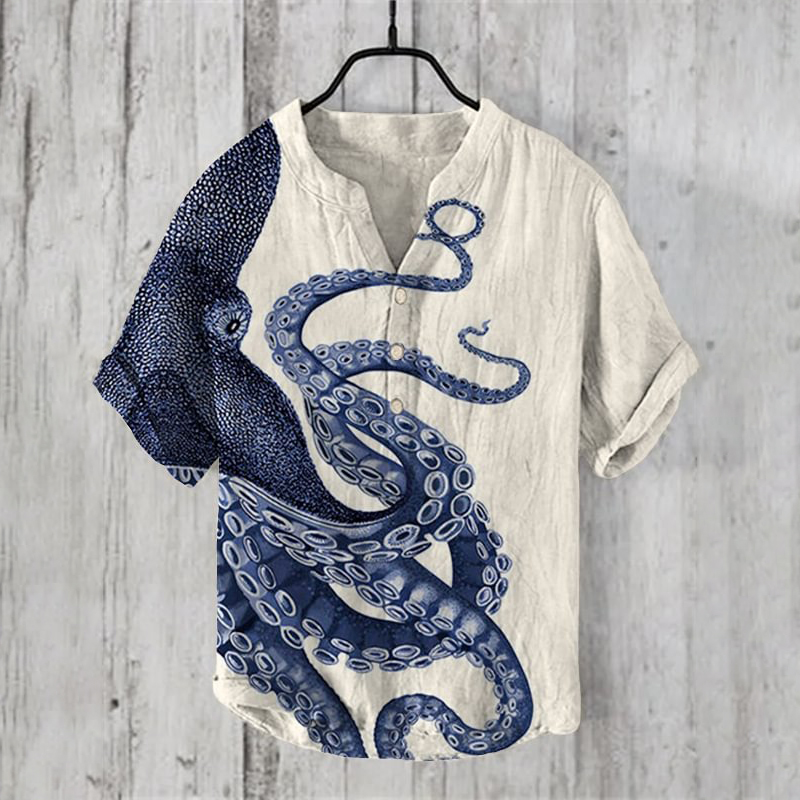 Vintage Octopus Art Print Casual Shirt