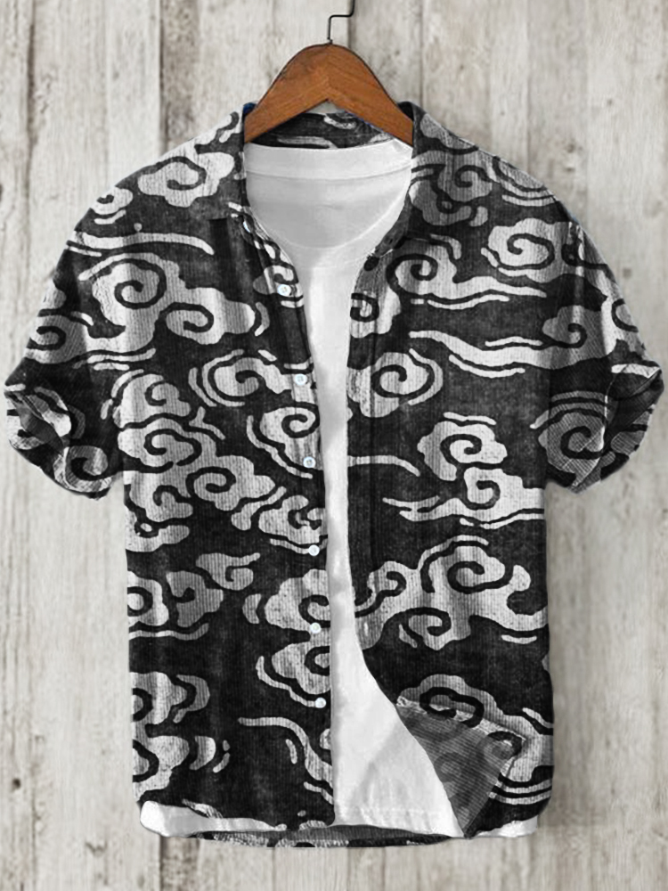 Japanese Wave Inspired Pattern Linen Blend Shirt