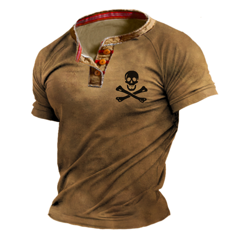 Men's Outdoor Tactical Skull Print Henley Shirt