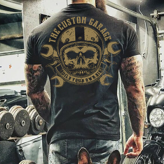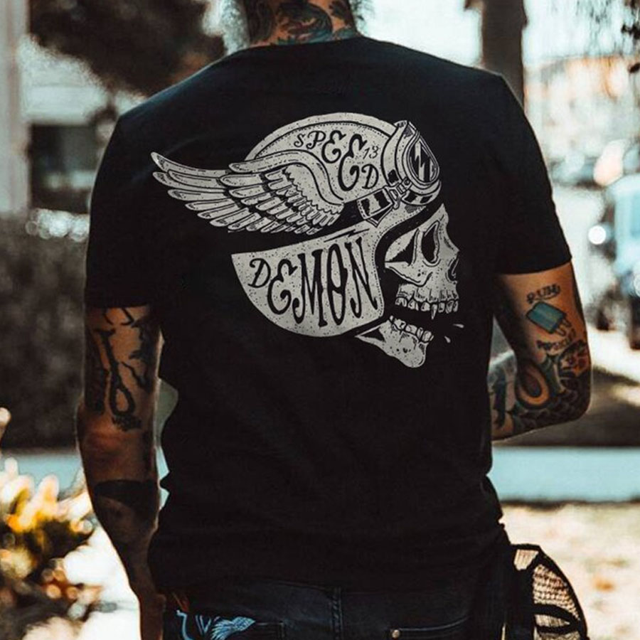 Mens Retro Motorcycle Riding Skull Printed T-Shirt
