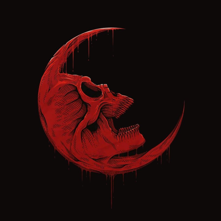 *Red Moon Skull Print Short Sleeve T-Shirt