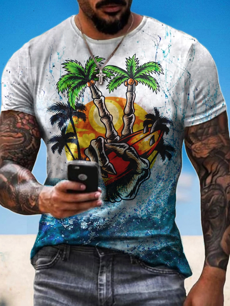 [clearance] Mens Skull Coconut Tree Print Fashion Casual T-shirt