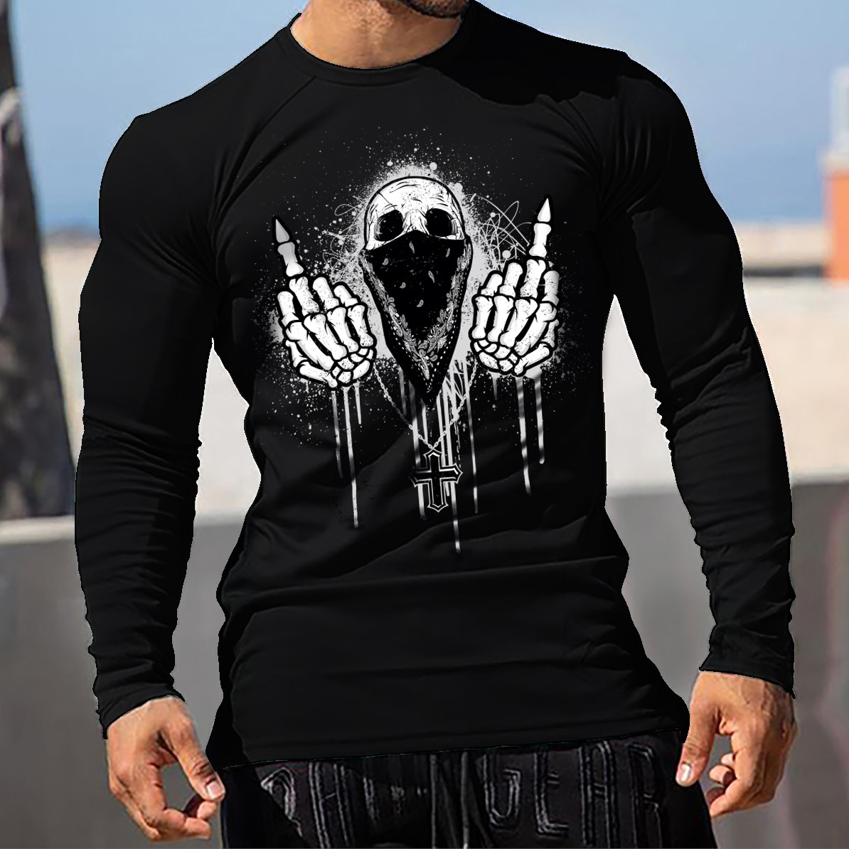 Skull Print Long-sleeved T-shirt