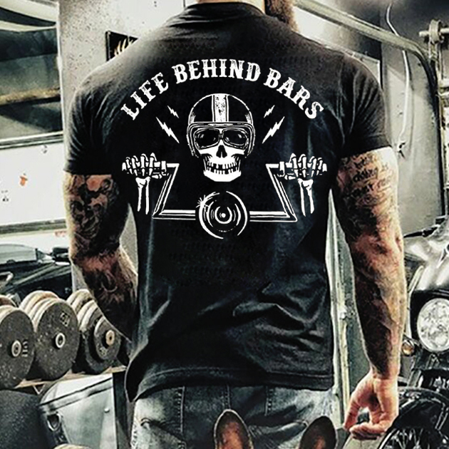 *Mens Skeleton Drive Motorcycle Life Behind Bars T-shirt
