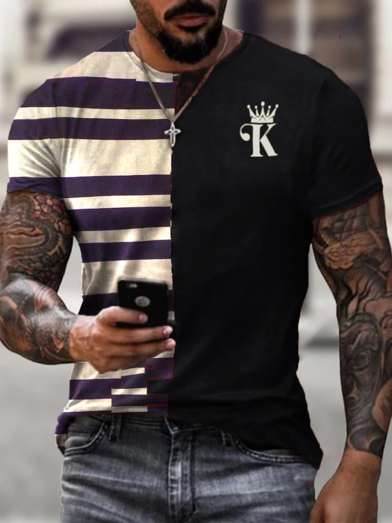 [clearance] Men's Contrasting Striped K King Print Casual T-Shirt