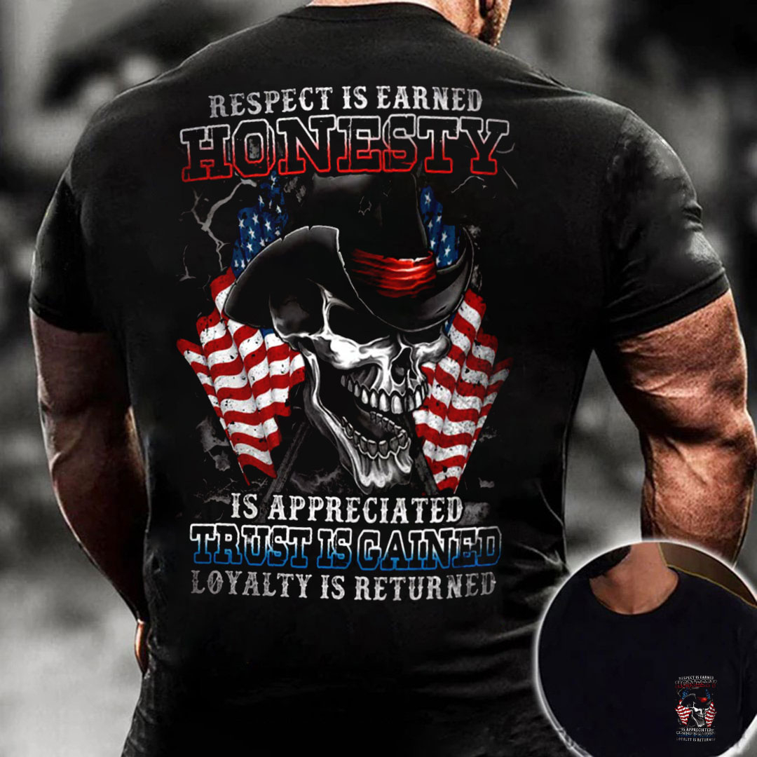 Respect Is Earned Skull Flag Patriotic Print Men's Short Sleeve T-Shirt