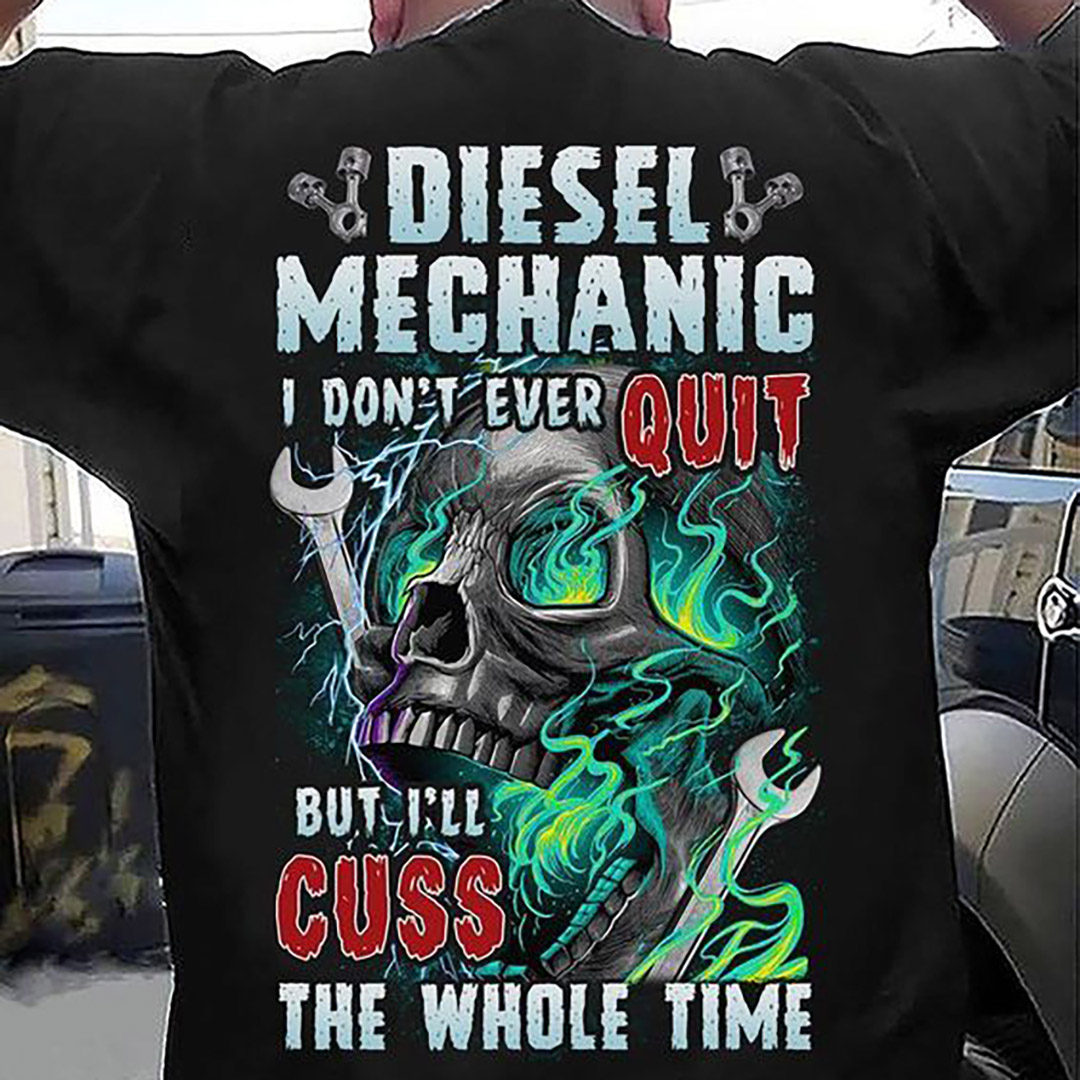 Skull Diesel Mechanic, I'll Never Give Up, But I'll Keep Cursing Print Men's T-Shirts