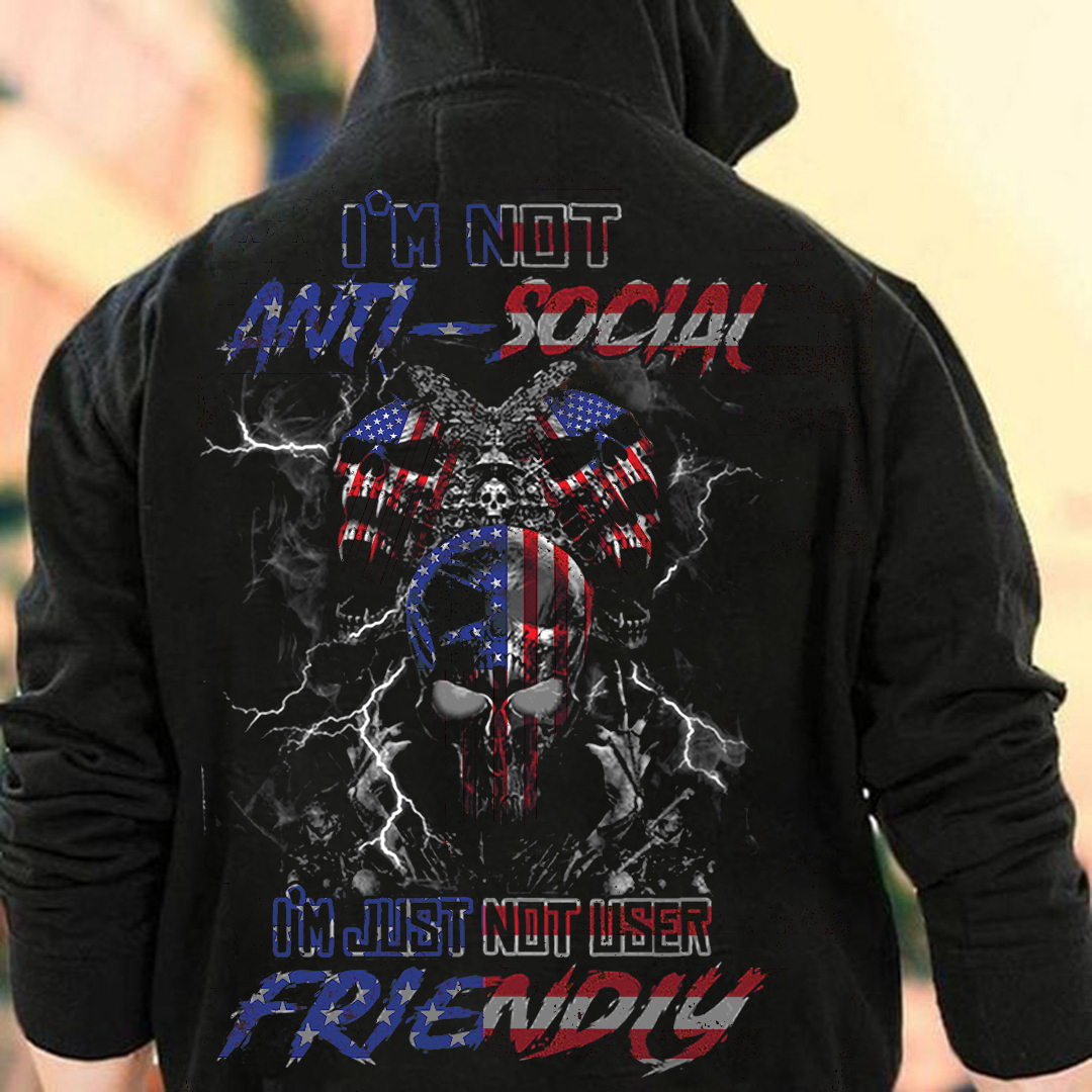 I'm Not Anti-social Skull American Flag Print Men's Hoodies Print Men's Hoodies