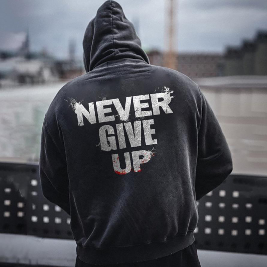 Never Give Up Printed Men's Versatile Printed Hoodie