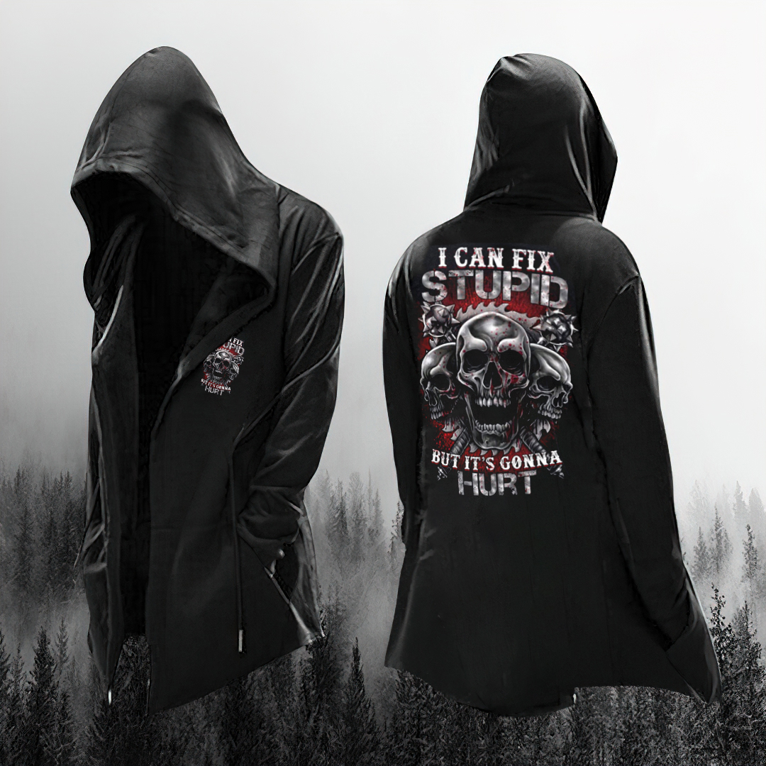I Can Fix Stupid 3 Skulls Printed Men's Hooded Jacket