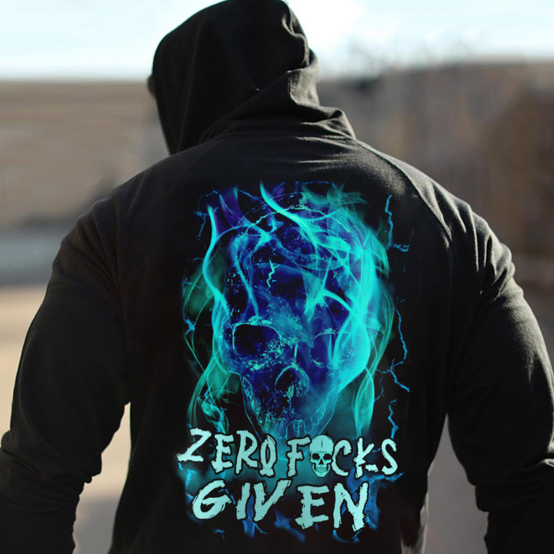 Zero F Given Blue Lightning Ghost Skull Print Men's Long Sleeve Hoodies