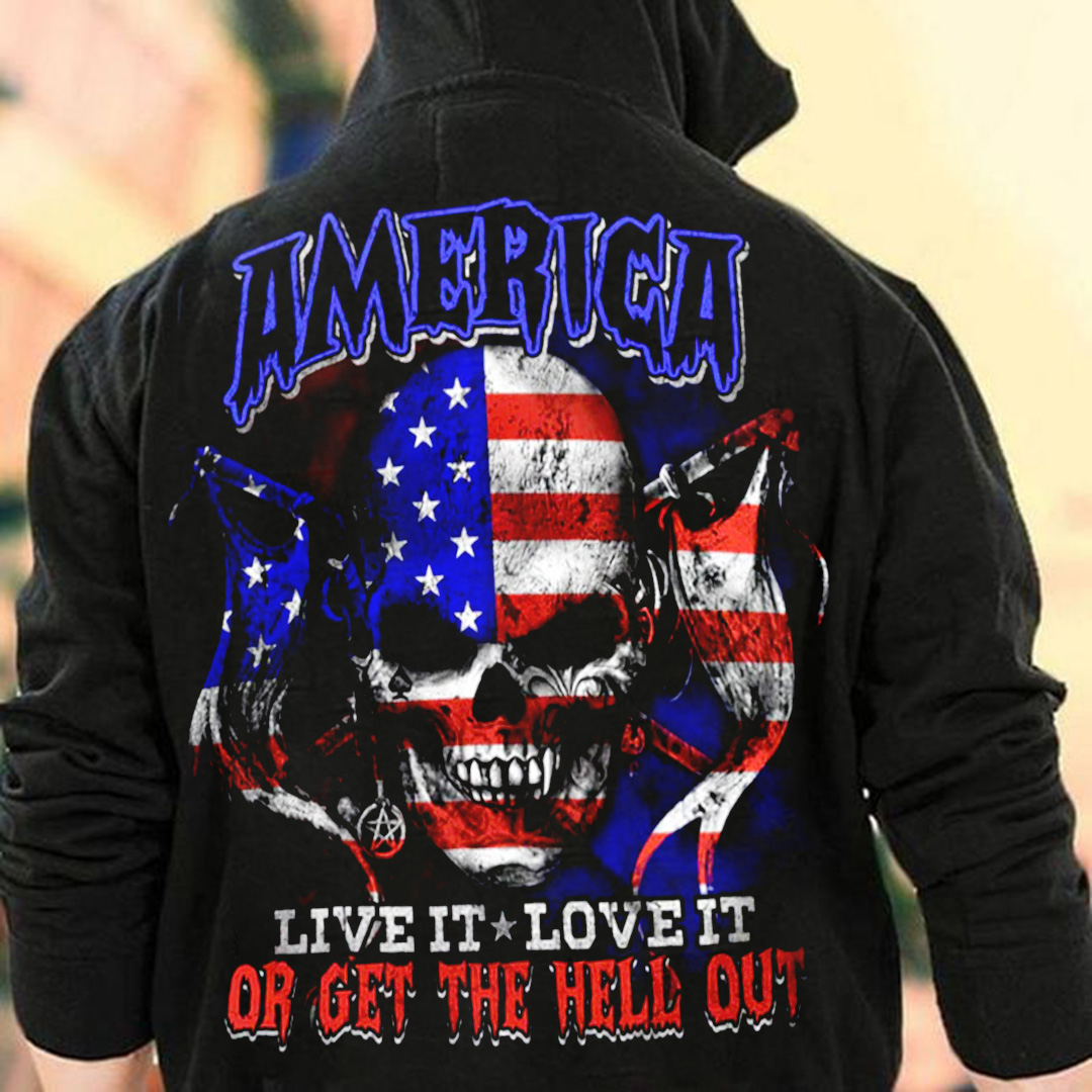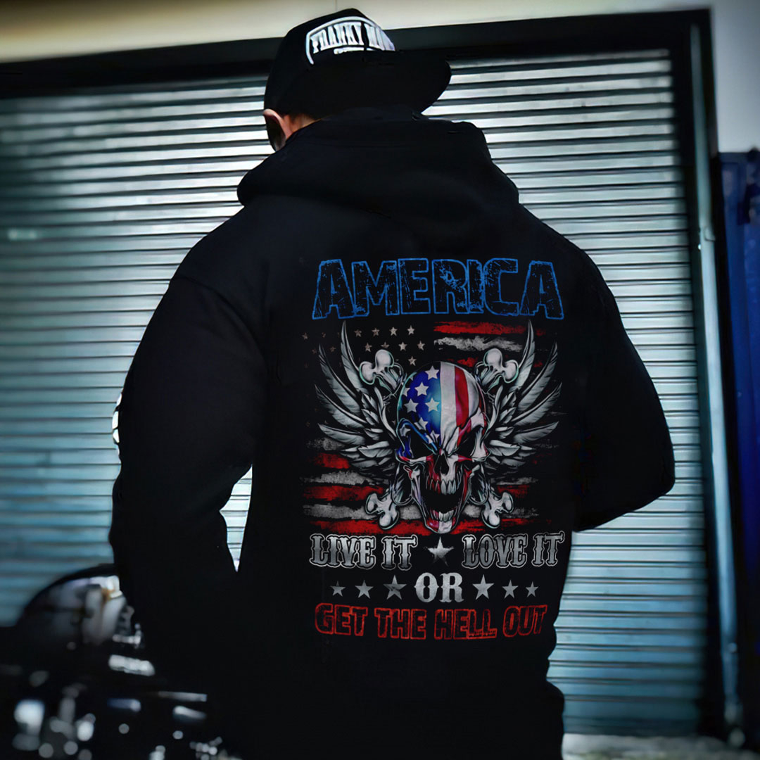 AMERICA LIVE IT SKULL FLAG Print Men's Hoodies