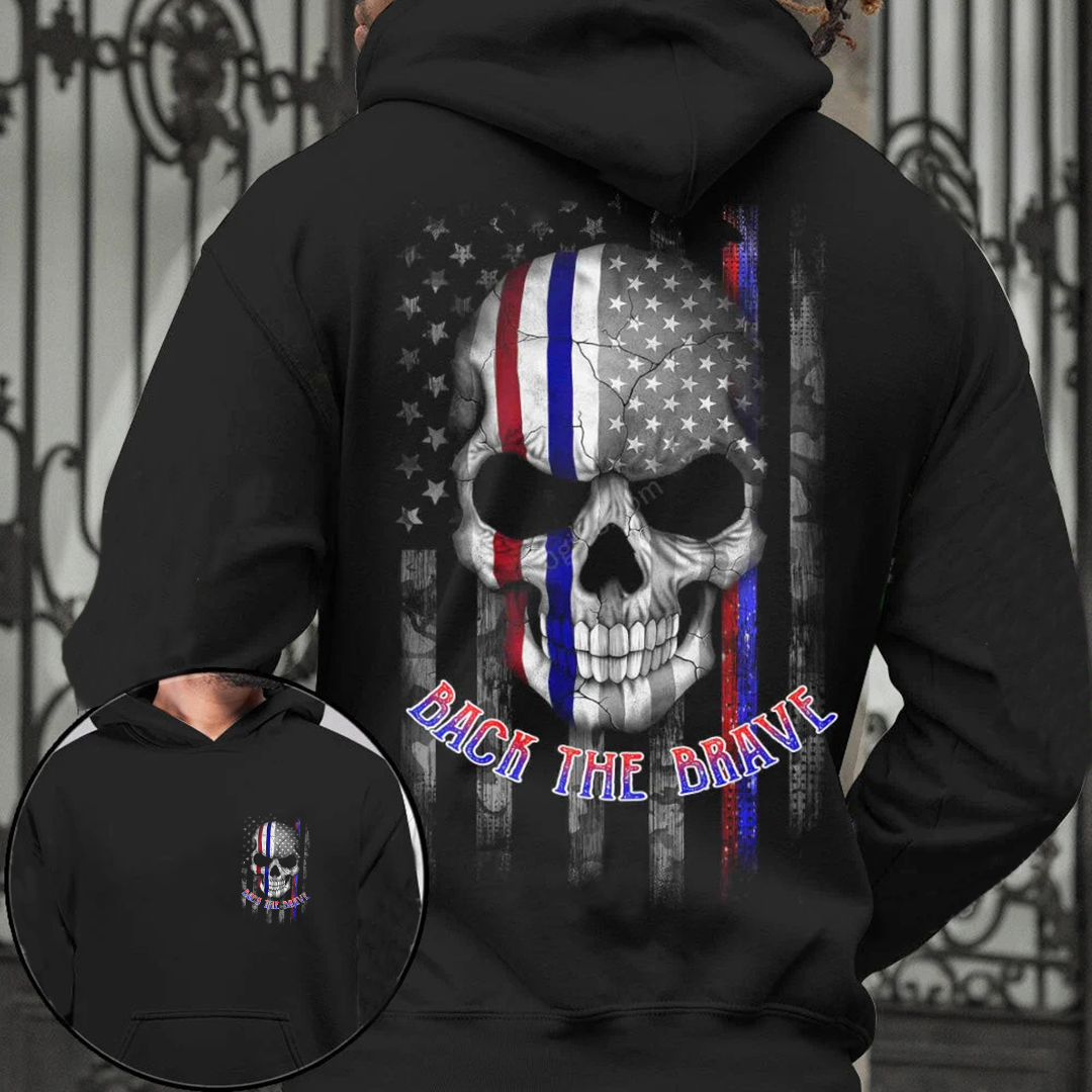 Back The Brave Skull All Over Print Men's Long Sleeve Hoodies