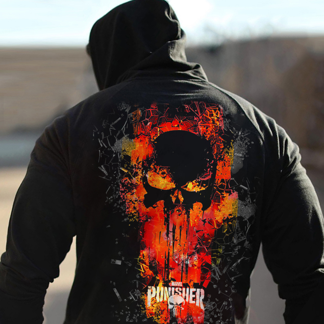 Fire Punisher Print Men's Long Sleeve Hoodies