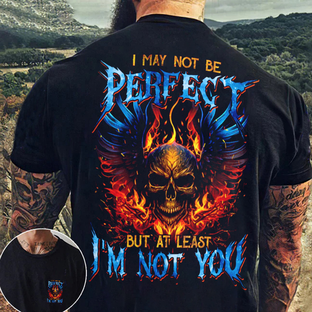 At Least I'm Not You Fire Skull Wings Print Men's Short Sleeve T-Shirt