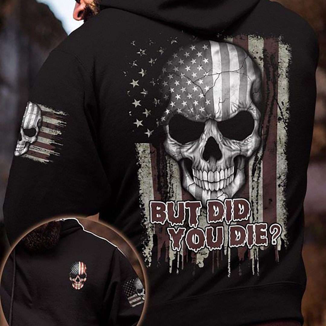 But Did You Die Skull Grunge Flag Print Men's Hoodie