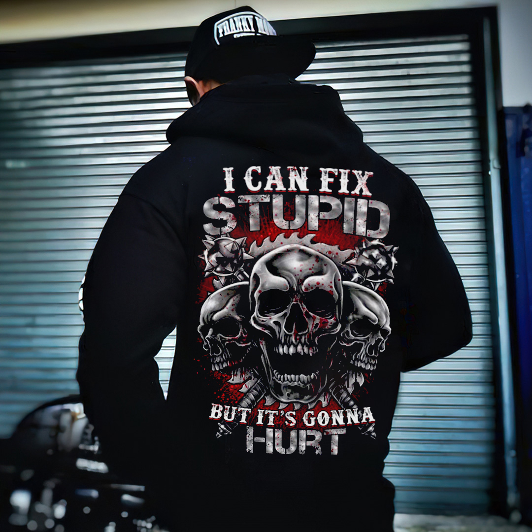 I Can Fix Stupid 3 Skulls Printed Men's Long Sleeve Hoodies