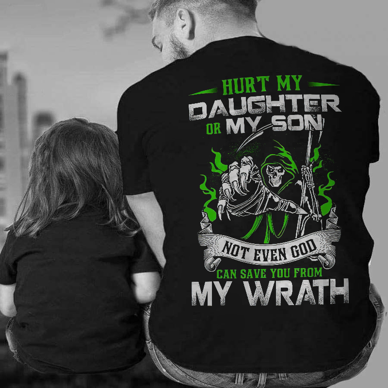 Hurt my daughter or my son, not even god can save you from my wrath Mens T-shirt