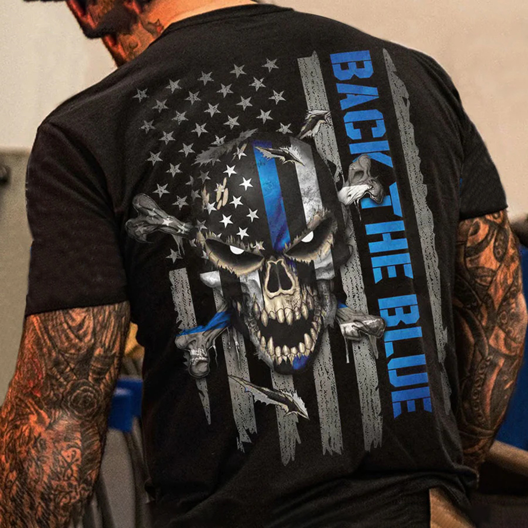 Back The Blue Pl Skull Bone Flag All Over Print Men's Short Sleeve T-Shirt